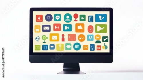 Colorful Digital Icons Displayed on a Modern Computer Monitor for Visual Communication Concepts