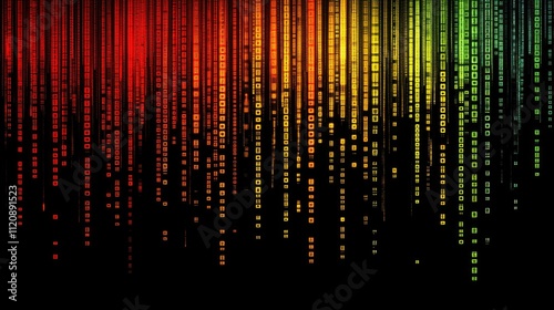 Colorful Digital Matrix Pattern with Binary Code Flowing Vertically