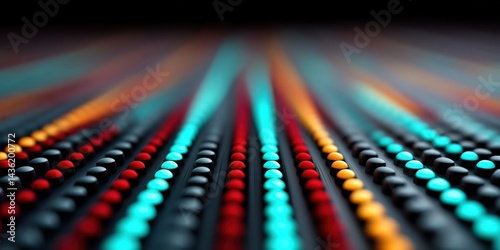 Colorful digital surface pattern of illuminated grid dots creating depth illusion representing futuristic interface cyber structure and advanced virtual simulation concept