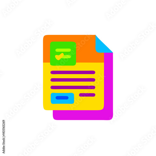 Colorful document icon with checkmark and text elements