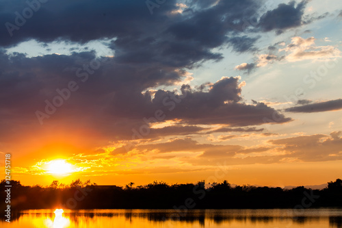 colorful dramatic sky with cloud at sunset