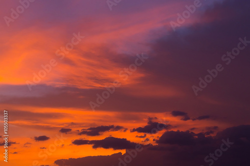 colorful dramatic sunset sky with orange cloud, twilight sky