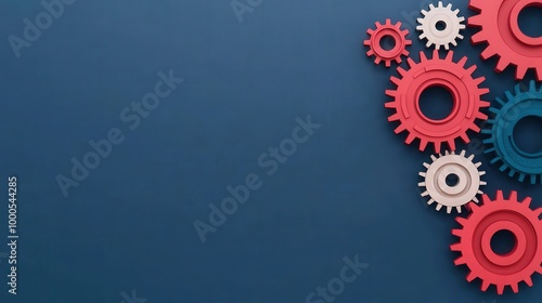 Colorful Gears Interlocking on Blue Background Business Process Teamwork Efficiency Co