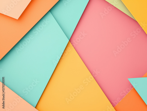 Colorful geometric background with overlapping pastel shapes in orange, pink, yellow, and teal, creating vibrant and modern design