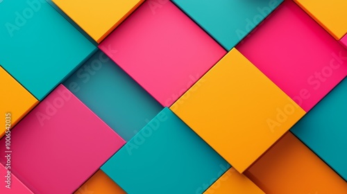 Colorful geometric paper shapes arranged in a modern, artistic pattern.