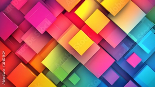 Colorful geometric pattern of overlapping 3D squares in a vibrant and abstract design