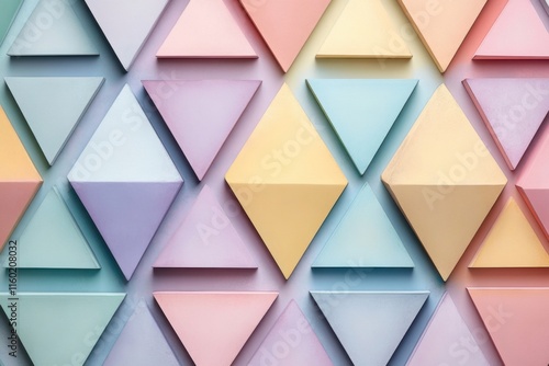 Colorful geometric shapes create a vibrant textured wall display in pastel hues for artistic inspiration and decoration