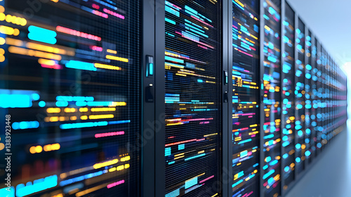 Colorful Glowing Code On Server Racks