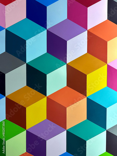 Colorful hexagon background cube shape with non-repeating colors pattern.