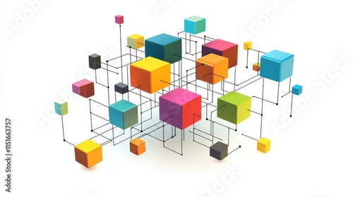 Colorful Interconnected Cubes: A 3D Network Visualization