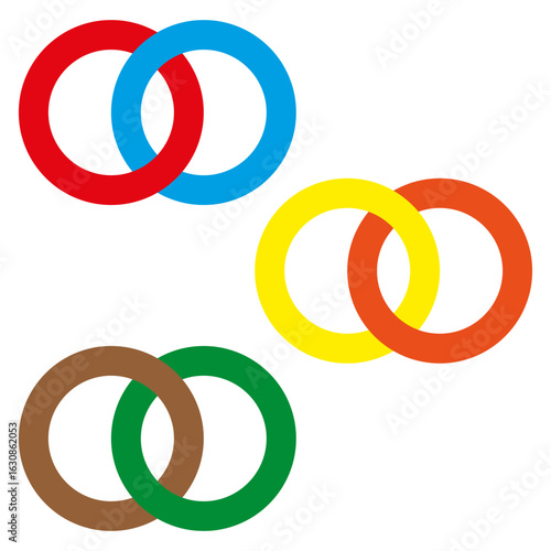 Colorful interlocked rings. Smooth connection symbol. Abstract round Vector. Vibrant modern element.