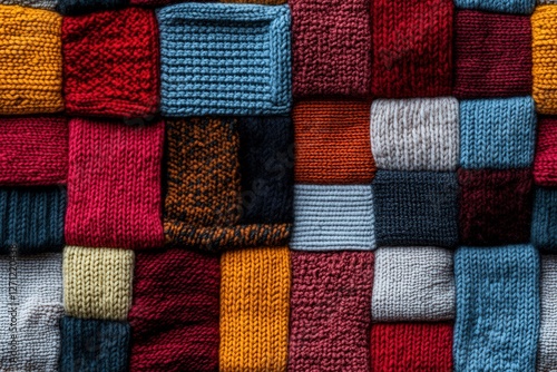 Colorful Knitted Patchwork Textile Background for Warmth and Comfort