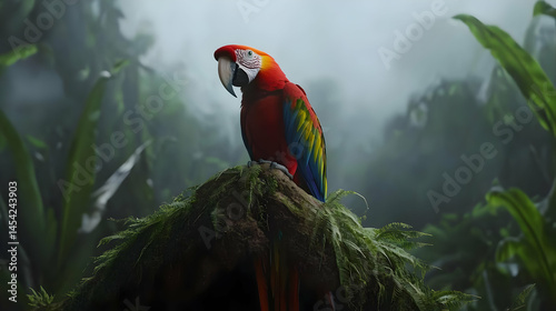 Colorful Macaw Parrot Perched In Tropical Rainforest