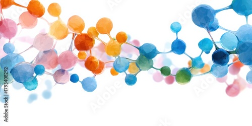 Colorful molecular structure on white background with geometric patterns