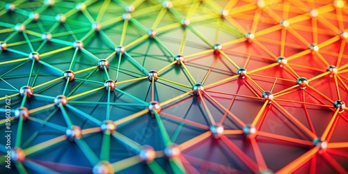Colorful Network of Interconnected Lines and Nodes. A vibrant and dynamic abstract image of a network with interconnected nodes and lines, representing concepts like technology, communication.