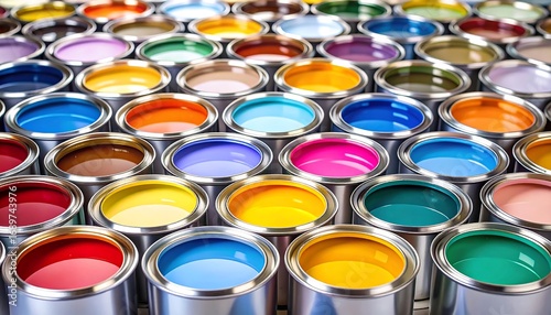 Colorful paint cans in a circular pattern