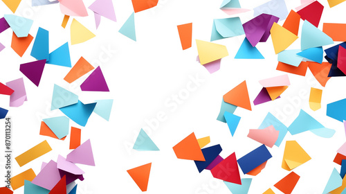 Colorful pasteboard cutouts scattered randomly on a transparent background