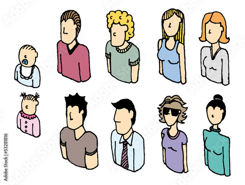 Colorful people vector icon set / Lineart avatars