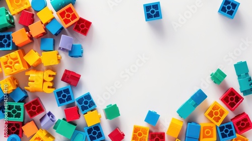 Colorful plastic blocks toy on white background.