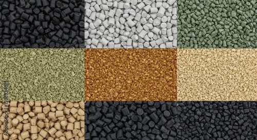 Colorful polymer granules in plastic industry layout