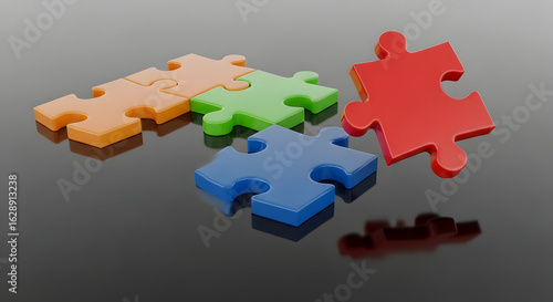 Colorful Puzzle Pieces on Reflective Surface Concept