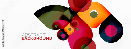 Colorful round shapes, circles and triangles background. Minimal geometric template for wallpaper, banner, presentation