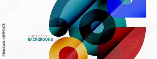 Colorful round shapes, circles and triangles background. Minimal geometric template for wallpaper, banner, presentation