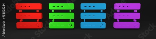 Colorful Server, Data, Web Hosting icon isolated on black background. Minimalism concept. 3D render illustration
