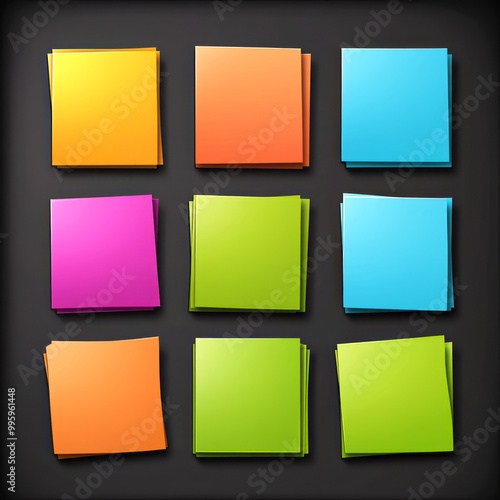 Colorful sheets for sticky notes on dark background