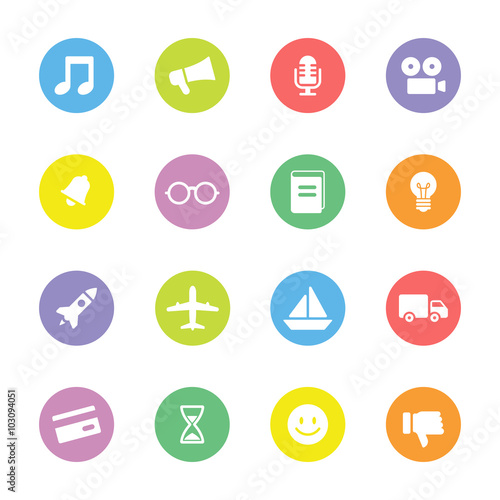 Colorful simple flat icon set 5 on circle for web design, user interface (UI), infographic and mobile application