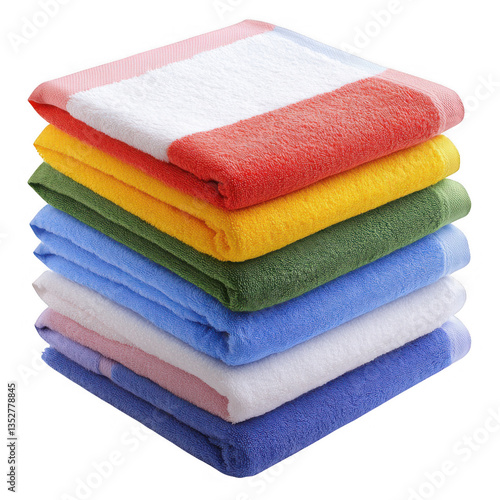 Colorful stack of soft towels folded neatly on a transparent background in a tidy display for home or spa use year-round