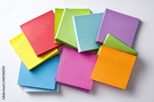 Colorful Sticky Notes Arranged on a White Surface for Reminders and Quick Notes
