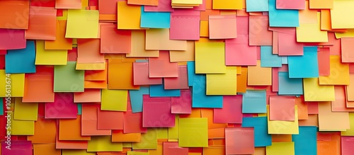 Colorful sticky notes creatively organized into rows creating an appealing copy space image