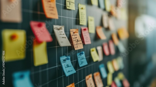 Colorful Sticky Notes on a Grid Board