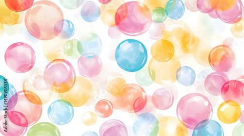 Colorful translucent bubbles against a white background.