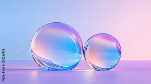 Colorful transparent spheres on table