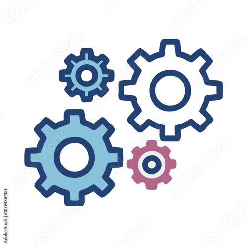 Colorful vector icon of gears in various sizes representing mechanical processes commonly used in engineering and design