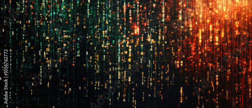 Colorful Vertical Numeric Digital Rain Pattern Cascade.