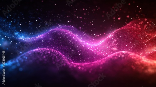 Colorful Wave Patterns with Sparkling Particles in Dark Background