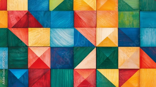 Colorful Wooden Blocks Geometric Pattern Texture Background
