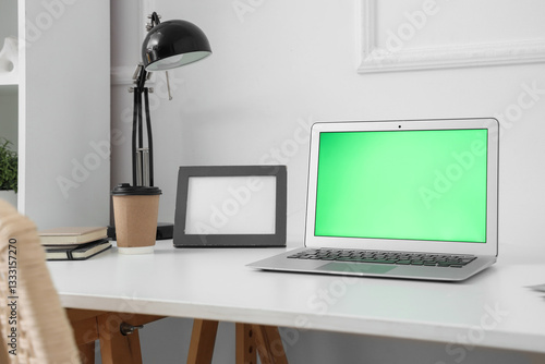 Comfortable workplace with modern laptop in room