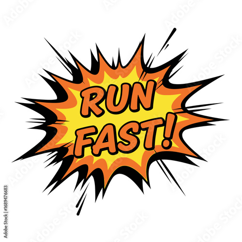 Comic Book Style "Run Fast!" Exclamation Speech Bubble