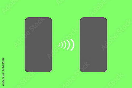 Communication between two devices. Transfer data between two gadgets using wireless networks. Horizontal image. 3d image. 3d rendering