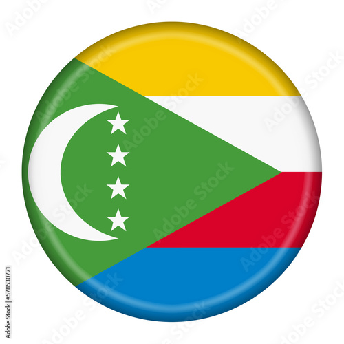 Comoros flag button 3d illustration with clipping path