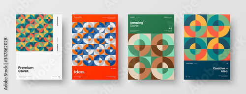 Company identity brochure template collection. Business presentation vector A4 vertical orientation front page mock up set. Corporate report cover abstract geometric illustration design layout bundle.