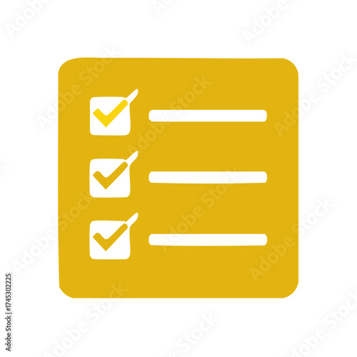 Completed Checklist with Checkmarks and Lines on Yellow Background, Representing Success, Task Completion and Organization