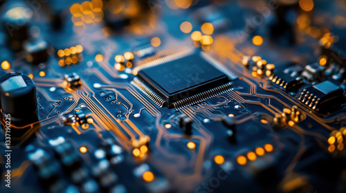 Complex Circuit Board Design with Microchips and Interconnected Traces for Modern Electronic Devices and Systems Technology Industry Applications