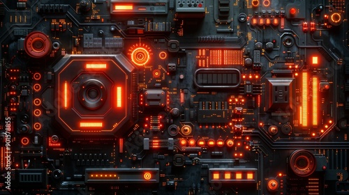 Complex Circuitry Network with Neon Highlights