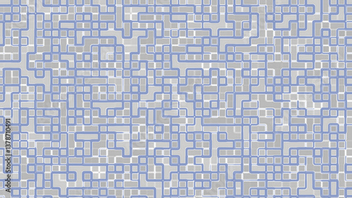 complex network of interconnected gray and blue squares