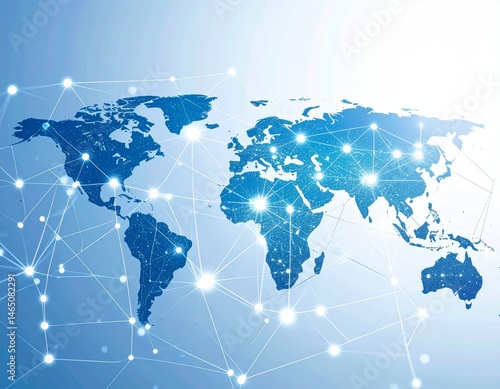 complex network of interconnected nodes, representing global communication and data flow
